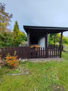 Sprzedam działkę ogrodową z domkiem murowanym, szklarnią, wędzarnią, wiatą drewnianą, ogrodzoną. Źywoplot. 4 ...
