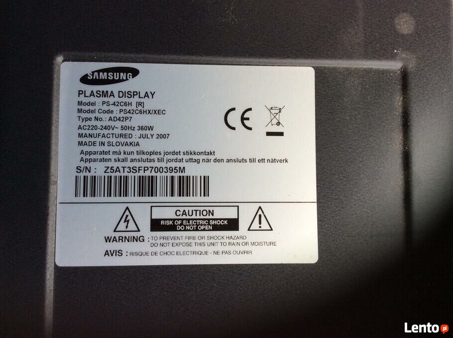 Telewizor Samsung na części, nie włącza sie.Sprawdź zainteresowanie tym ogłoszeniem
